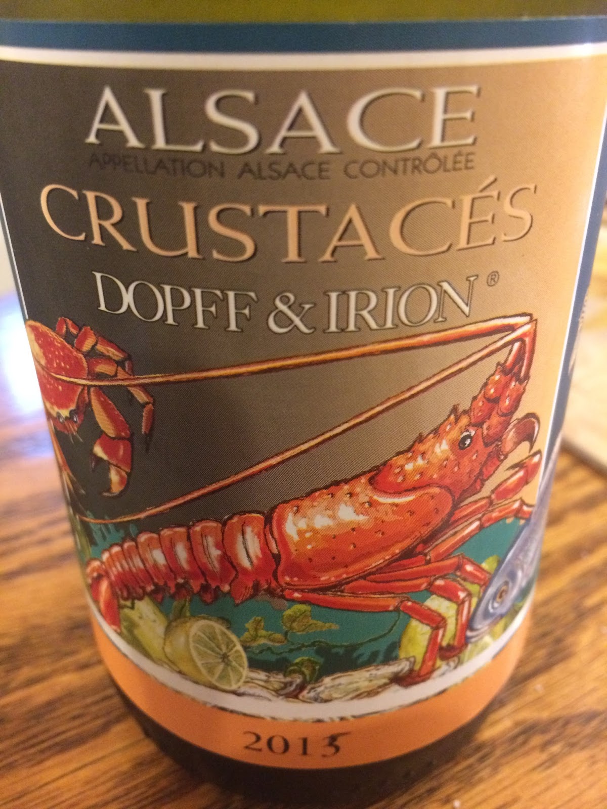 The 2015 Cuvée René Dopff Crustacés ($12.99) is a blend of 80% Sylvaner and 20% Pinot Blanc, sourced from 300 selected vine-growers. The wine sits on the lees for about 4 weeks and sits in stainless steel for about six months before bottling. This wine had a slightly brighter golden color than the Pinot Blanc but had an equally delightful fruity aroma. On the palate, it is crisper and leaner, with delicious apple and citrus notes, a backbone of minerality, and a pleasing finish. Like the Pinot Blanc, this wine is an easy drinking, but not single-note, wine and a very good value at this price. As the label notes, this is an excellent wine for crustaceans and shellfish. I would love to pair this with a plate of oysters, shrimp cocktail and a chilled lobster tail.