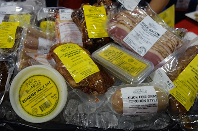 Sullivan County, New York which raise heirloom poultry, game birds and other meats such as rabbit. They also produce foie gras and foie-related products. At the Expo, they were sampling a number of duck products, from