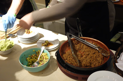 Red Roast Duck Tostadas with a spicy pineapple salsa and avocado puree (though I had mine without the avocado). The duck was tender and flavorful, with a nice blend of spices, and the salsa added a mildly spicy kick. The tortilla chip made a nice vehicle for the duck and I enjoyed several of these tostadas as I sampled several wines. It went especially well with both a