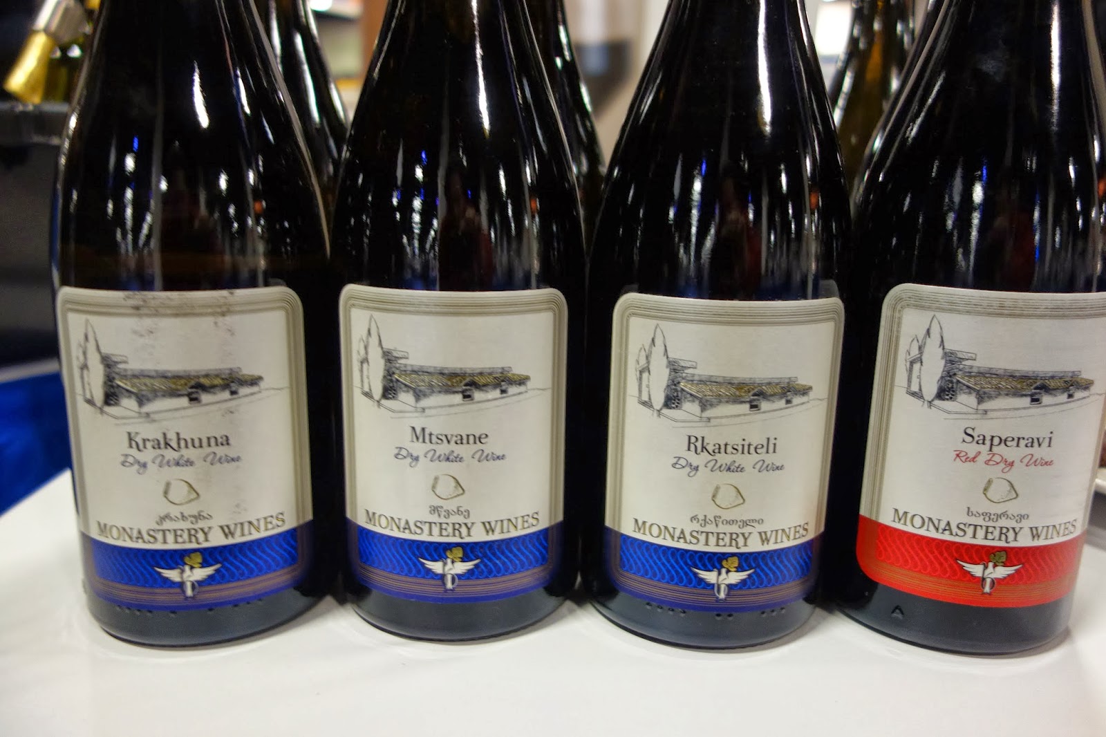 Of the 12 wines I tasted, I found the Khareba Monastery Wines, those made with qvevri, to be the most compelling. They produce about 8 different monastery wines, including 6 whites and 2 reds, and they had 4 of them available for tasting at the Expo. The four wines I tasted were all single varietal wines, using indigenous Georgian grapes that are rarely seen outside of Georgia. You might be familiar though with Rkatiseli as it is now being grown in several other regions, and some can even be found in Massachusetts, grown by Westport Rivers.