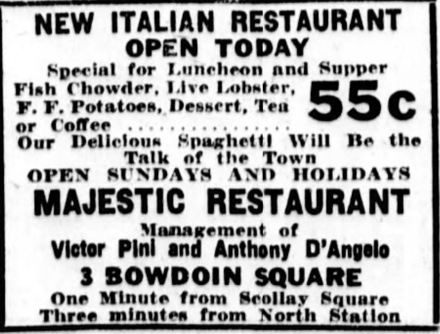 Finest Italian Restaurant in New England.” The restaurant may only have lasted one more year.