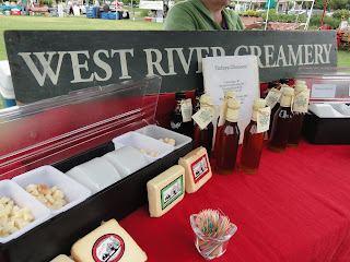 West River Creamery, located in Vermont, brought several different cheese, as well as some maple syrup. Their selection of cheese will rotate each time they are at the market, which should be every other week. The cheeses this week included Cambridge (a farmhouse cheddar), a Smoked Cambridge, Farmhouse Jack, Firehouse Jack, Chevre, Marinated Chevre and Marinated Feta. Samples of all were available, and they were very good cheeses. I really enjoyed the Smoked Cambridge and the Chevre.