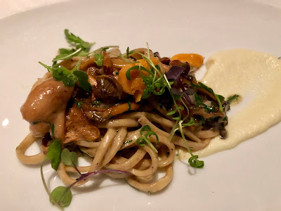 The restaurant presented us with an extra, complimentary course, their Rye Chitarra, made with uni, celeriac, and mushrooms. I loved this dish! Perfectly cooked pasta, briny uni, and umami-rich mushrooms, all combined for a fantastic taste. Such a nice blend of flavors of the soil and sea. Highly recommended!