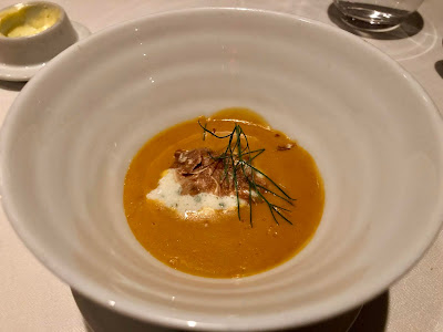 The next course was Scallops, with sweet potato, pomegranate, and pistachio. Initially, I was confused about the "orange" scallops in the dish before realizing they were actually sweet potatoes that were shaped like scallops and seared in a similar manner as well. And they were so tasty, a nice sweetness with a great sear. This is something I'd love to replicate at home. The sweet scallops were also seared perfectly, bringing fresh, clean flavors enhanced by the nuttiness of the pistachio. Another winner of a dish and highly recommended. The wine pairing was the 2017 Le Roc Des Anges Llum Grenache Gris, a complex and compelling wine, with rich citrus notes, intense minerality, and great acidity. A wine of elegance and restrained power, one to please most wine lovers.